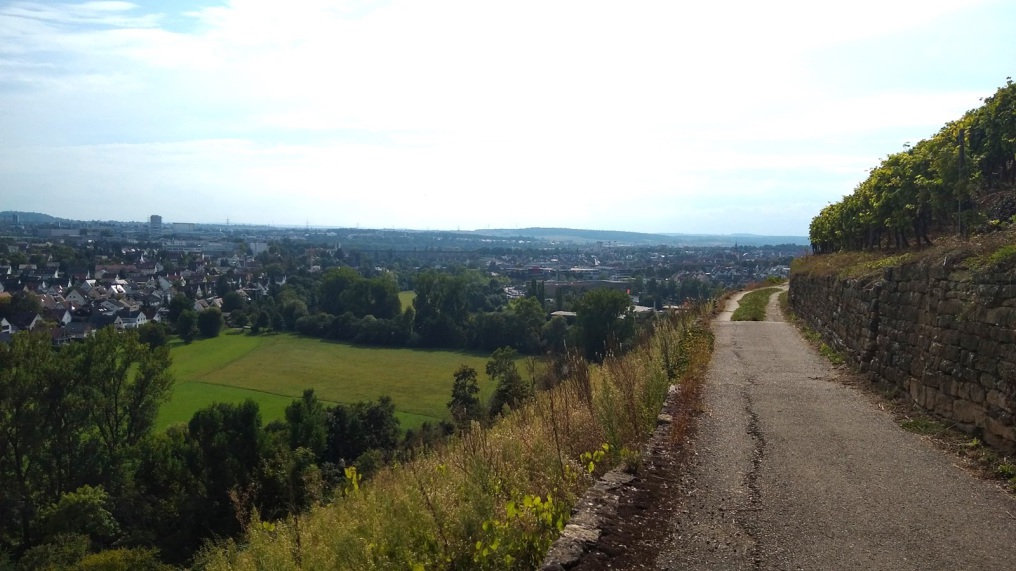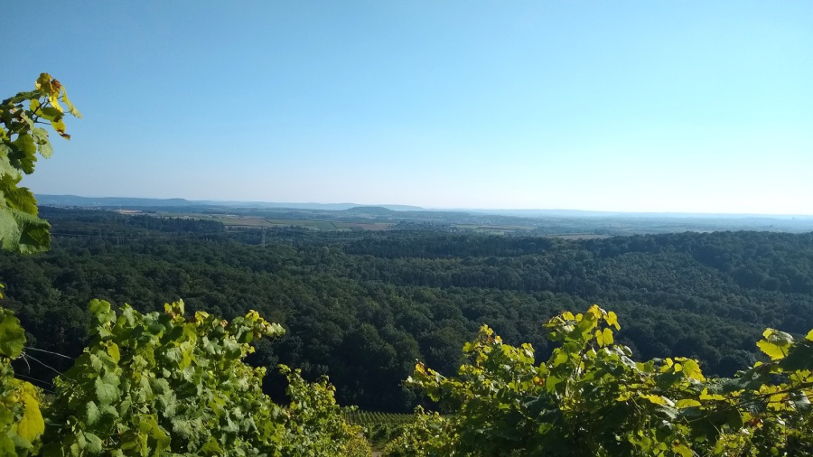 Der Harzberg bei Großbottwar ist mit seinen 384 m Höhe schon ein stattlicher Berg und mit dem Fahrrad nicht ohne Kraftanstrengung zu bezwingen. Oben bietet sich über den Weinberg hinweg eine